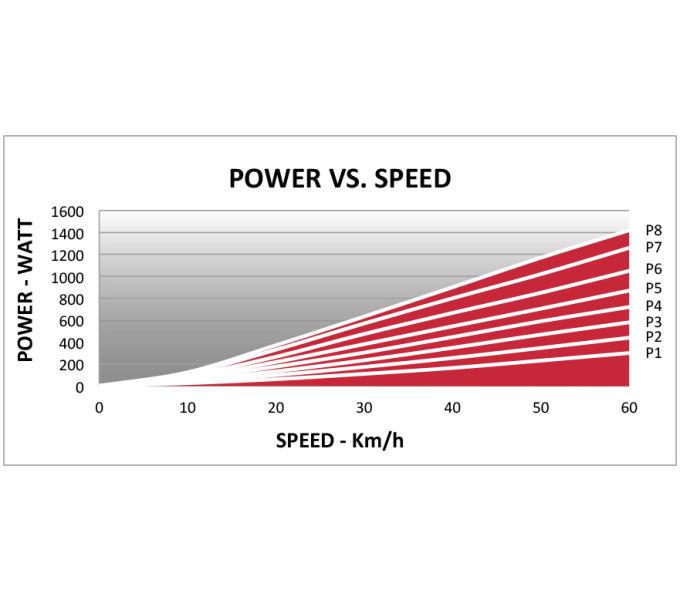 Widerstandsstufen: 8 Stufen über Lenkerhebel einstellbar