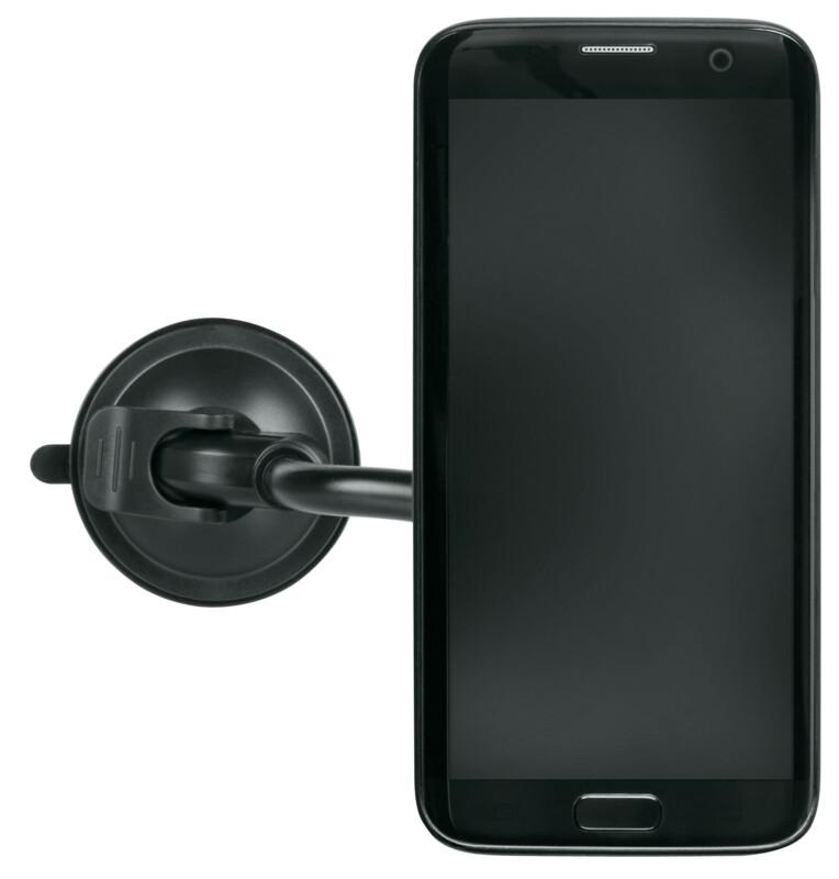 Ob im Auto, in der Küche oder am Arbeitsplatz: Mit der COMPIT FLEXX Smartphonehalterung ist das Handy immer in Sichtweite. Das universelle System verfügt über einen Flexarm, der sich ganz unkompliziert in die gewünschte Position biegen lässt. Durch das drehbare Kugelgelenk ist das Handy winkelverstellbar und kann horizontal oder vertikal verwendet werden. So hat man das Smartphone im Blick und die Hände sind frei. Der Silikon-Saugnapf mit Vakuum-Hebelmechanismus gewährleistet einen zuverlässigen Halt an allen glatten Oberflächen wie Fliesen, Windschutzscheiben oder Glas. Es wird empfohlen, die Fläche vorher zu reinigen. Dank der bewährten COMPIT Bajonett-Aufnahme kann das Smartphone mit einem Dreh an der Halterung befestigt und wieder abgenommen werden. Hierfür ist ein spezielles COMPIT-Cover erforderlich.