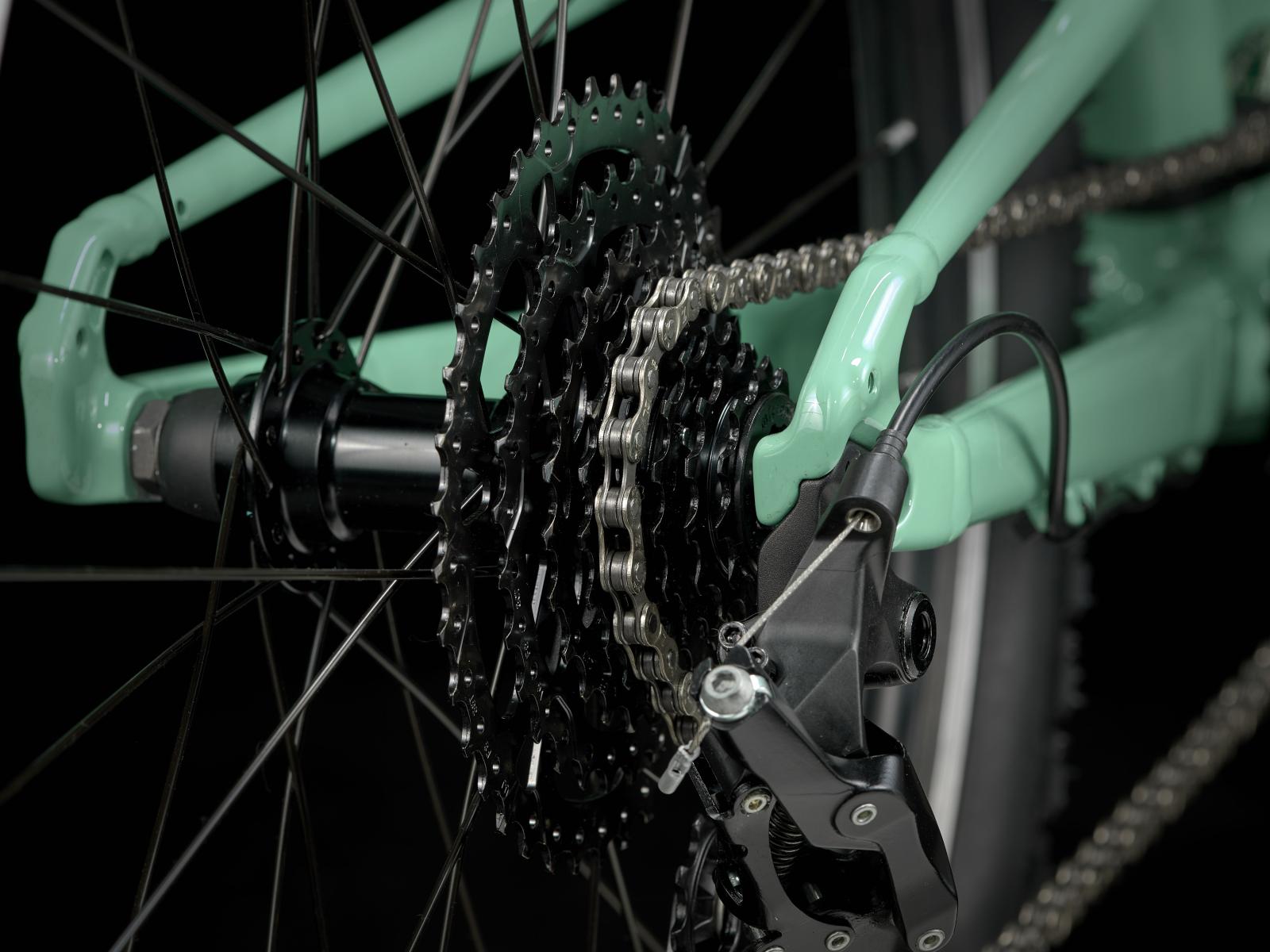 Gangschaltung: microSHIFT Acolyte M5180S, max. 34 – 38 Z. an größtem Ritzel